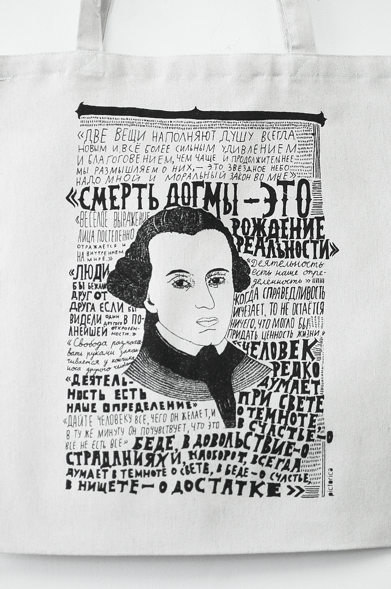 На сумке-шопере - небольшая подборка цитат из трудов Иммануила Канта.