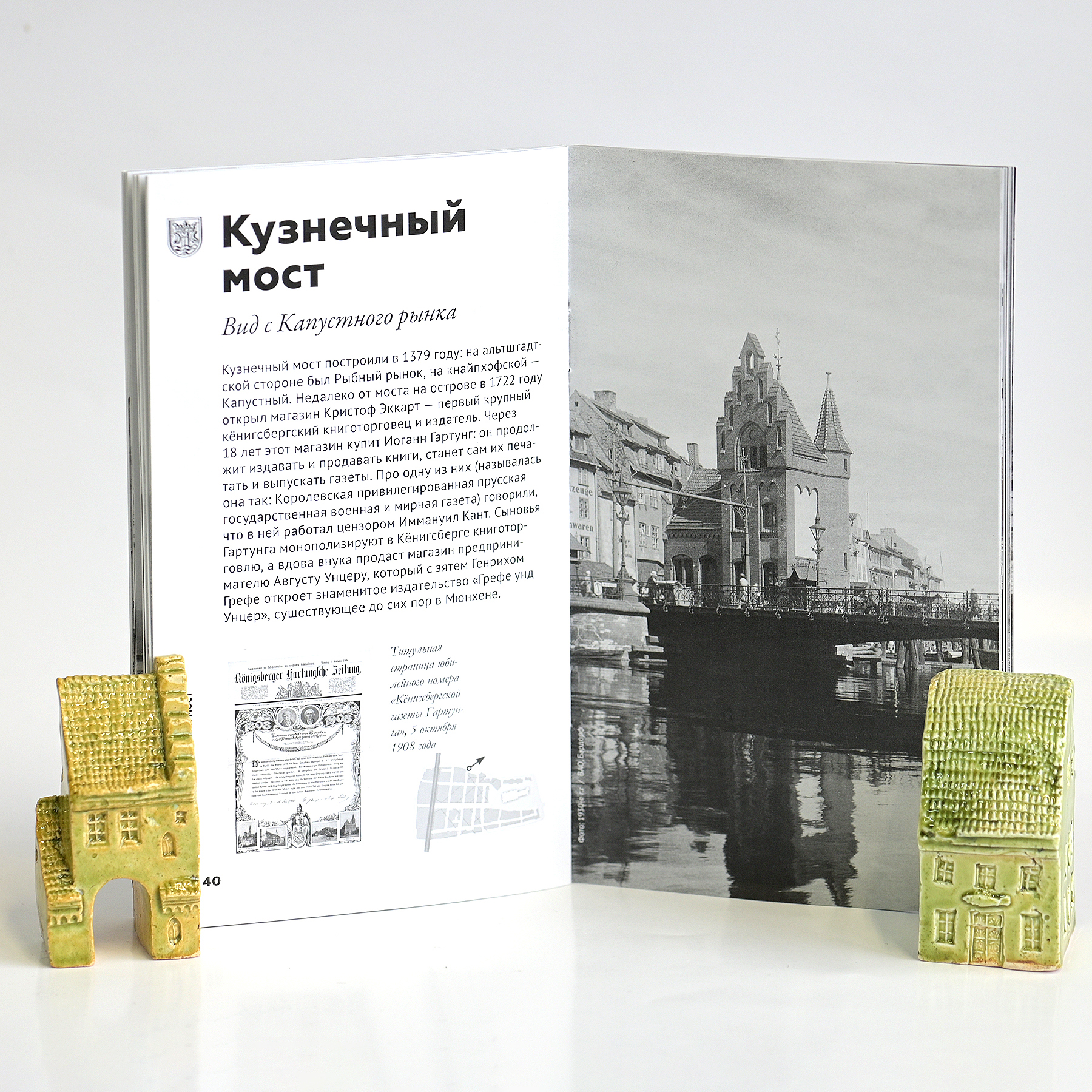 Исторический путеводитель по острову Кнайпхоф, выпущенный совместно с «Музеем города Кёнигсберг». В нем собраны отличные фотографии, дополненные историями старого города — про улицы, дома и их обитателей. Каждая большая фотография дополнена планом с точкой съемки и направлением взгляда фотографа.