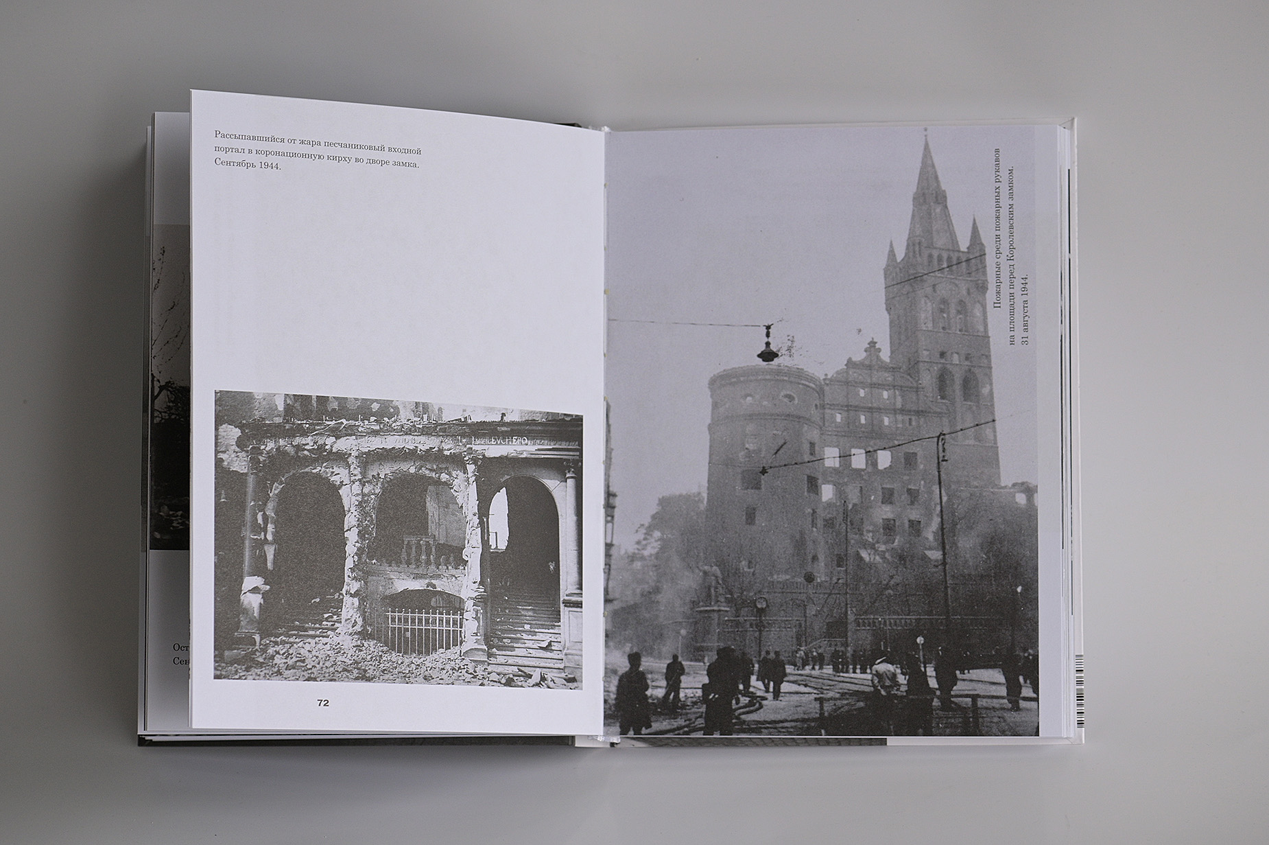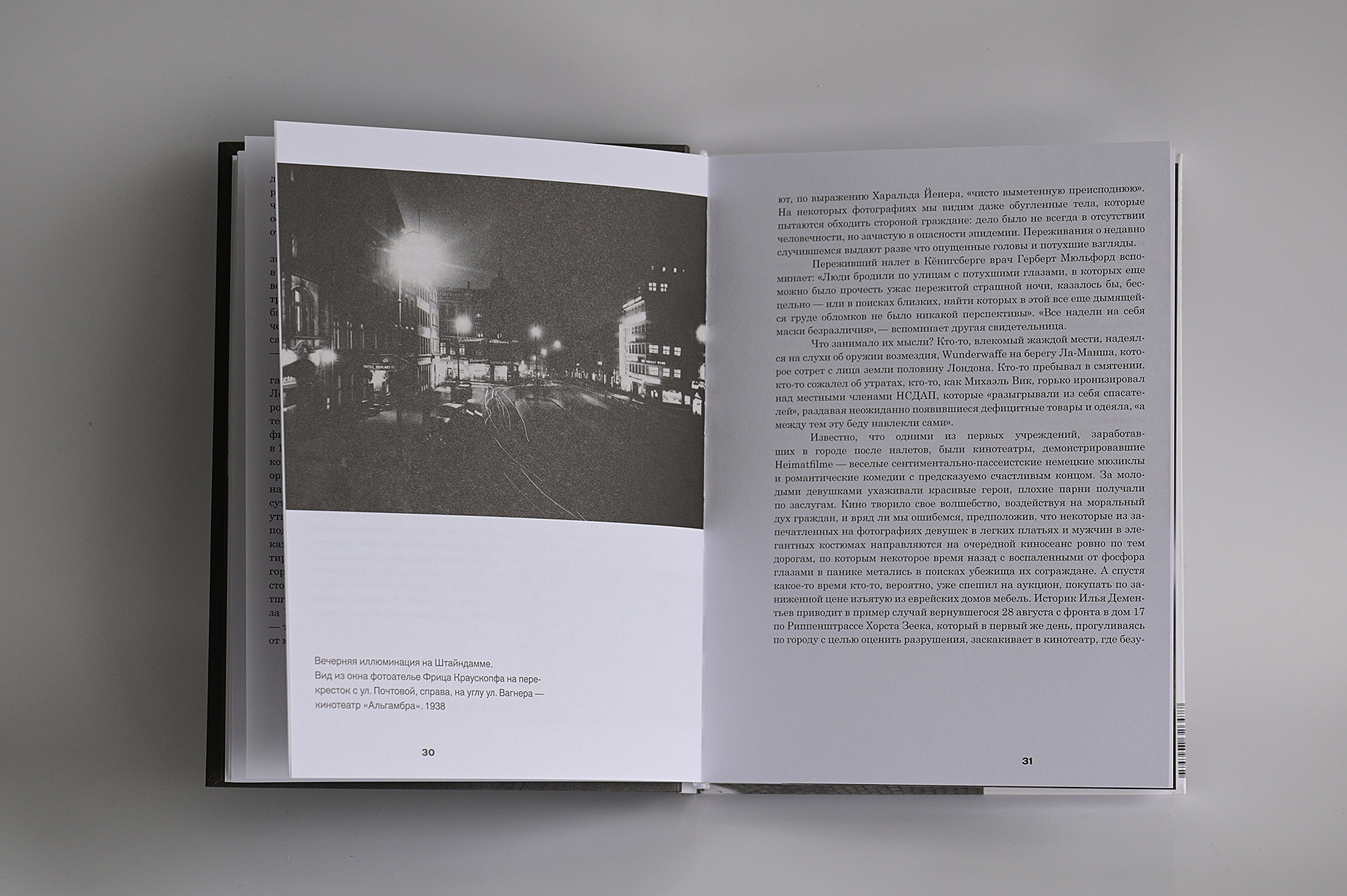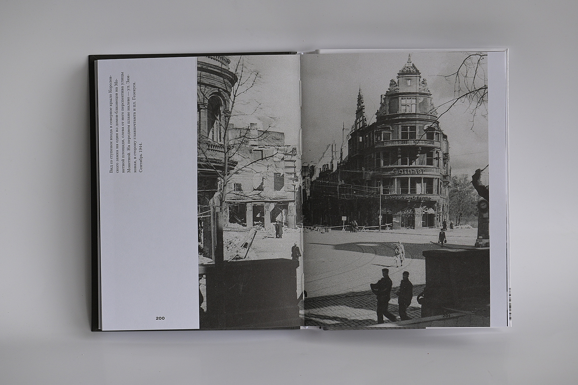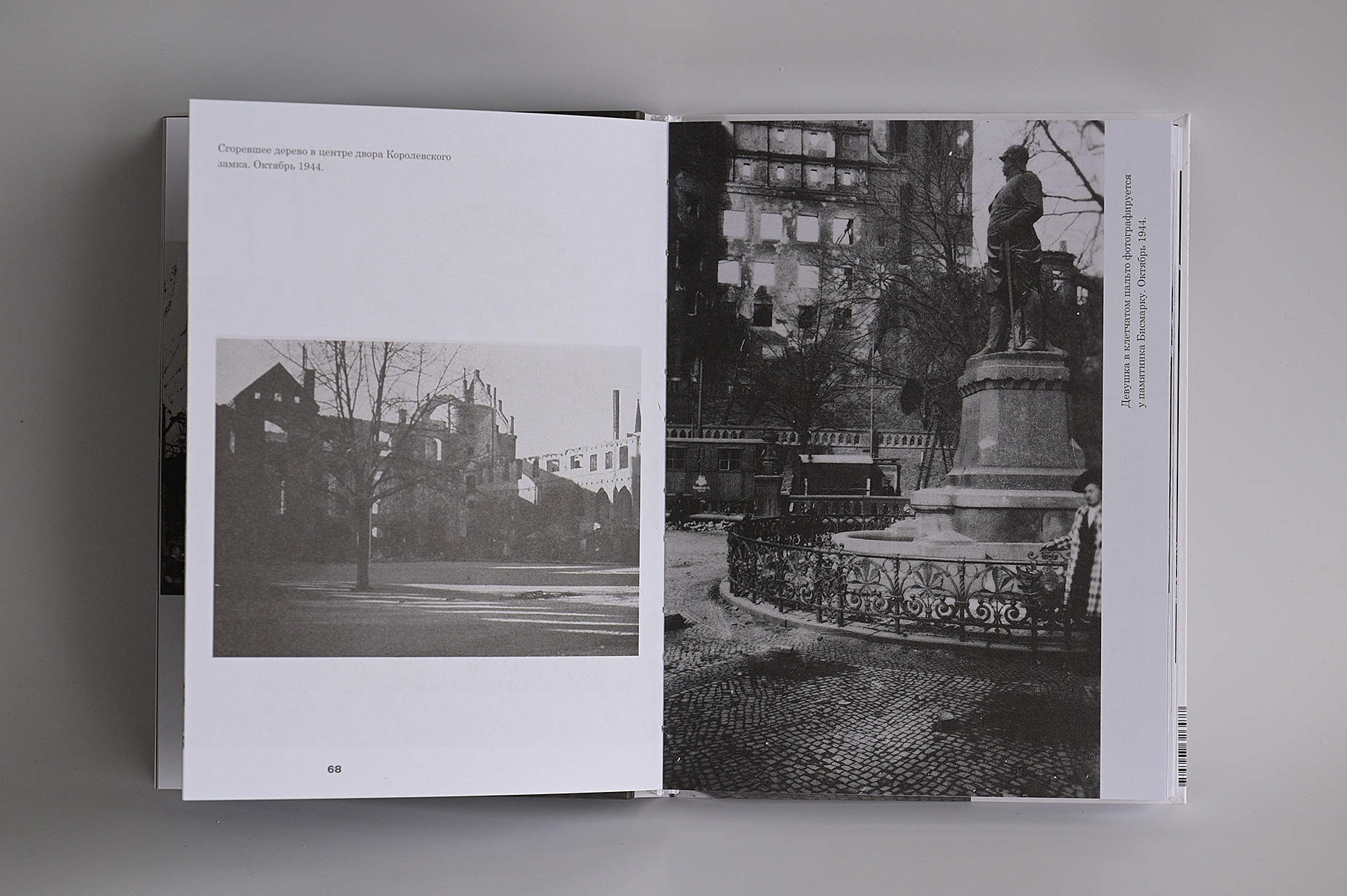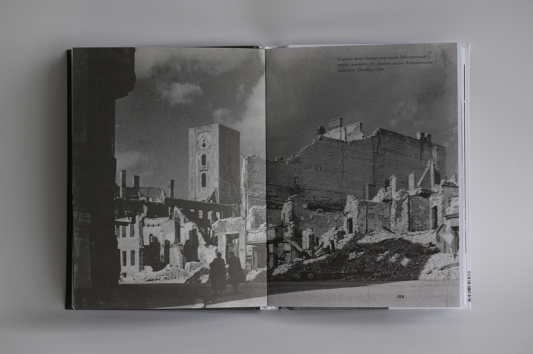Фотоальбом о Кёнигсберге в 1944 году. Горящий город после британского авианалёта 28 августа 1944 года. Растерянные жители пытаются узнать свой древний город в обгоревших остовах зданий. Горящий кафедральный собор на острове Кнайпхоф. Пожарные тушат королевский замок. Пешеходы на улице Кнайпхофской длинной и Форштадской длинной перед Кёнигсбергской биржей, женщины сидят на стульях у Зеленого моста, сторожат скромные пожитки, спасенные из пожара и теперь сложенные кучками на набережной реки Прегель. И уже обычные толпы стоят ждут трамвая среди руин на площади перед Королевским замком, люли деловито идут по улицам по каким-то своим неведомым делам, делая вид что все как бы не так и плохо, жизнь продолжается и они живы, не смотря на то, что город мертв. Город начал умирать, но люди еще не верят в это, еще полны энергии и чужды смирению, еще не знают, что расстаются навсегда.