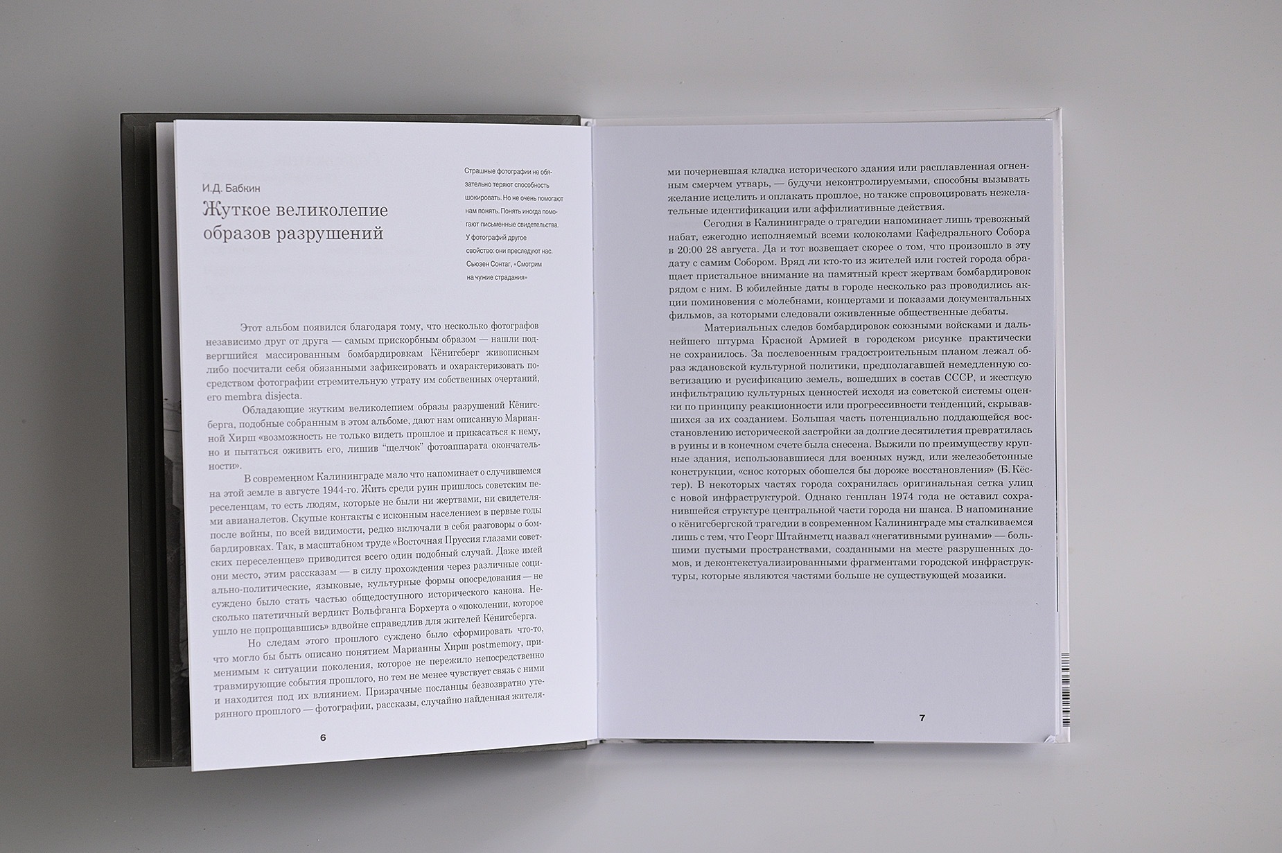 В книге представлены несколько коллекций фотографий Кёнигсберга, фиксирующих последствия британского авианалёта на город в конце августа 1944 года, а так же повседневную жизнь горожан среди руин сожжённого города.