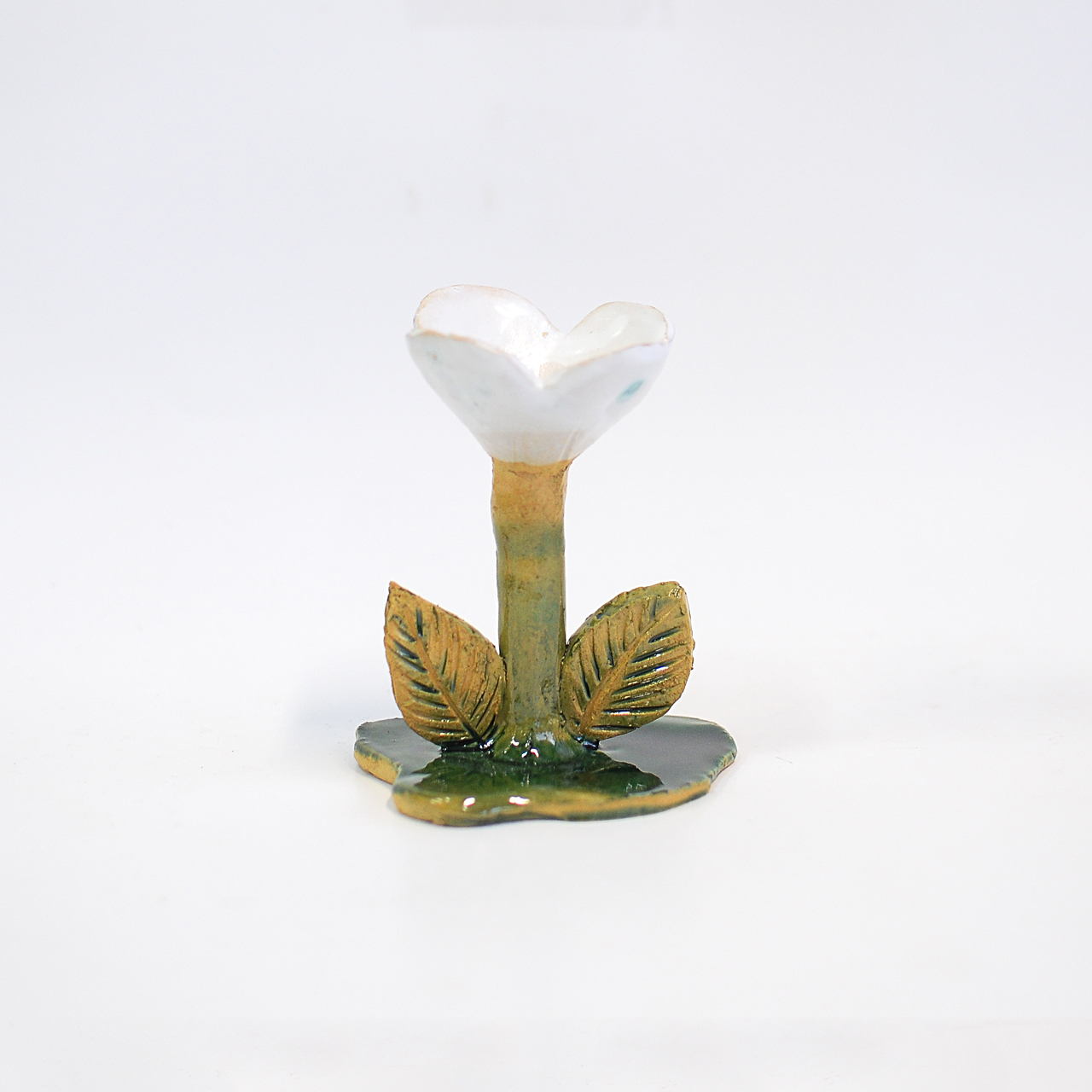 Подсвечник Цветок с листьями, 1 соцветие, белый