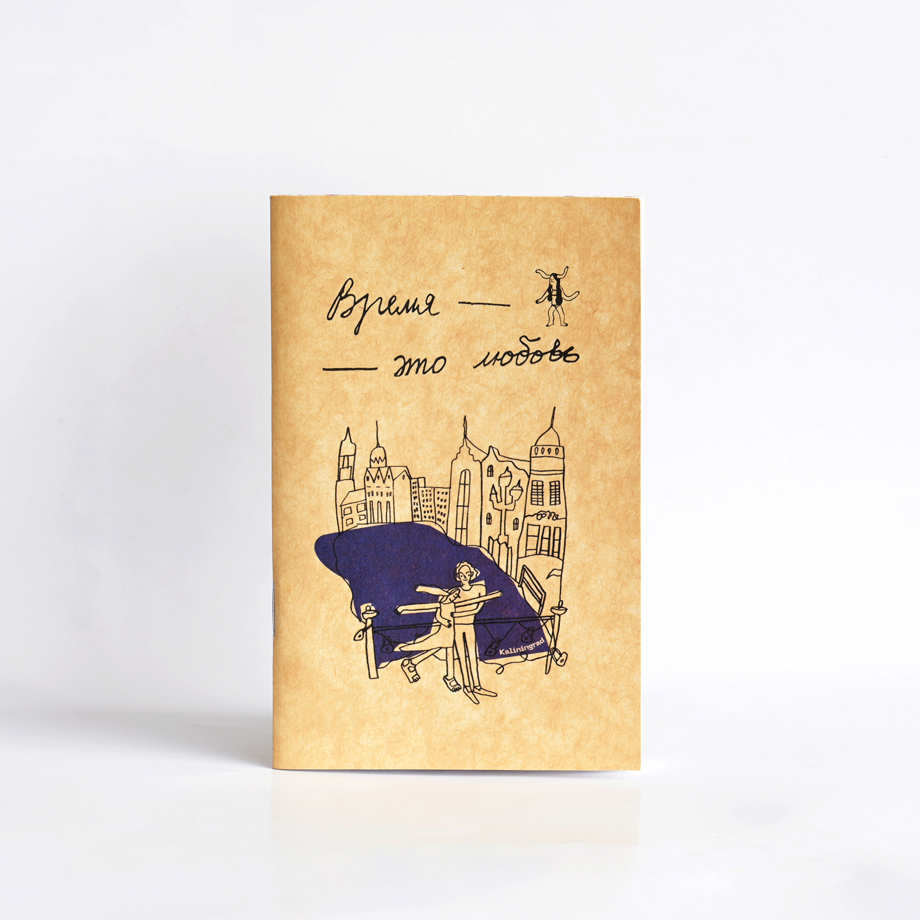 На обложке из крафтовой бумаги представлена цитата «Время — это любовь» с изображением пары на мосты в Рыбной деревне.
