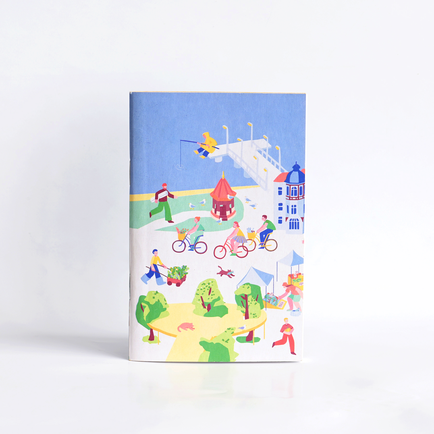 На обложке изображена яркая и теплая иллюстрация с жизнью в курортном городе — Зеленоградске.