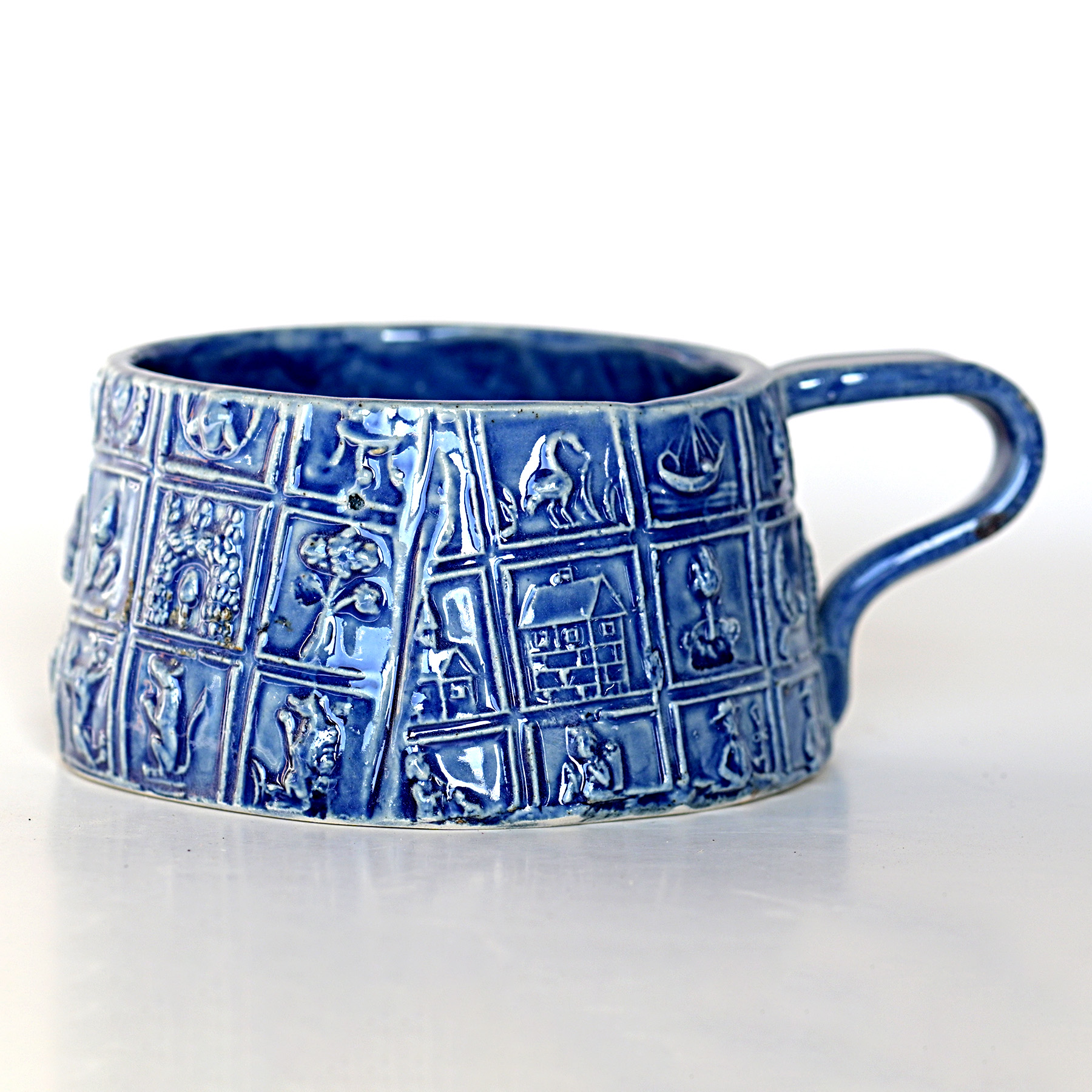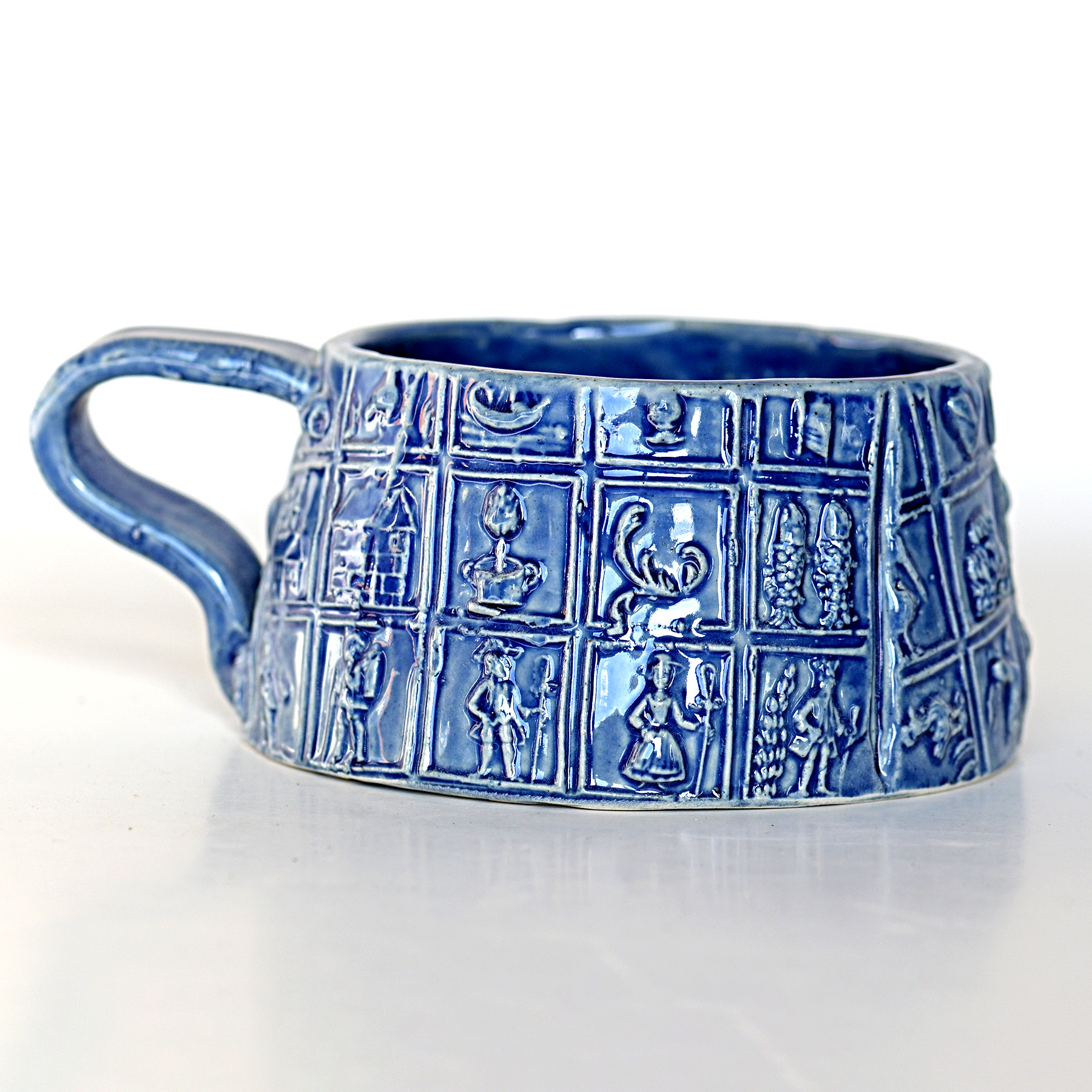 Коллекция «Пряники и сотворение мира» — это керамика, выполненная методом литья по формам с последующей ручной доработкой и глазурованием. Орнаменты на этой коллекции посуды взяты напрямую с марципановых и пряничных форм XVII – XIX веков. Здесь и ганзейские купцы, и Балтийские осетры, и петухи, и сердца, а также купцы на петухах и почтальоны на улитках. Есть и более серьёзные мотивы — семь дней творения, Адам и Ева у Райского дерева со Змеем, фонарщики, мясники, бочкари и каменщики.