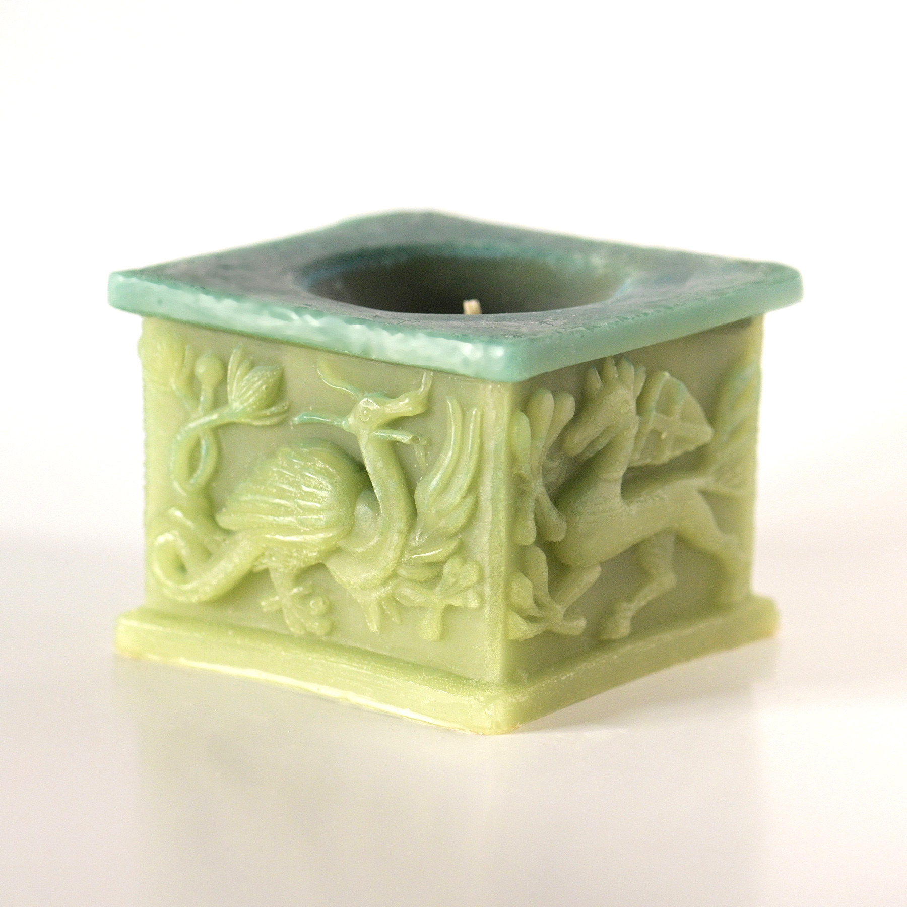 Основой формы для свечи стали изразцы с готическими химерами, украшавшие лентой галерею внутреннего двора резиденции верховного магистра тевтонского ордена в замке Мариенбург.