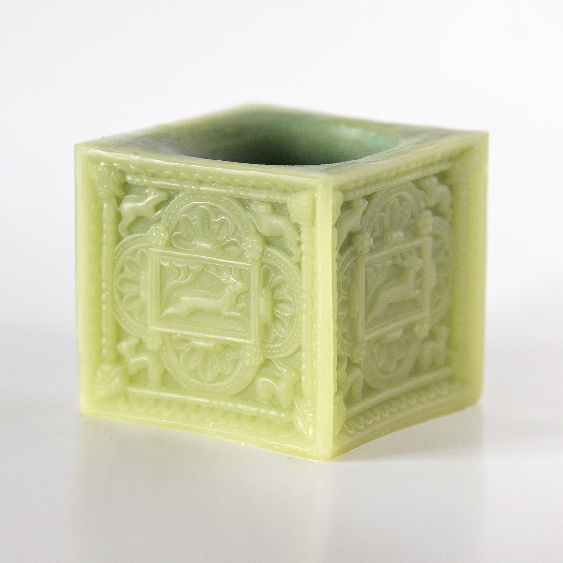 В разработке образов коллекции свечей мы использовали формы местных керамических изразцов разных эпох: готическая (1350-е), северный ренессанс и маньеризм (1580-е), барокко (1650-е) и изображения хаусмарок эпохи ардеко 1920-х годов, сохранившиеся на калининградских улицах. Свечи пастельных тонов, плюс новогодние ароматы: имбирного пряника, коричных булок, печенья, новогодней елки, пихты (и, само собой, шампанского с мандаринами)