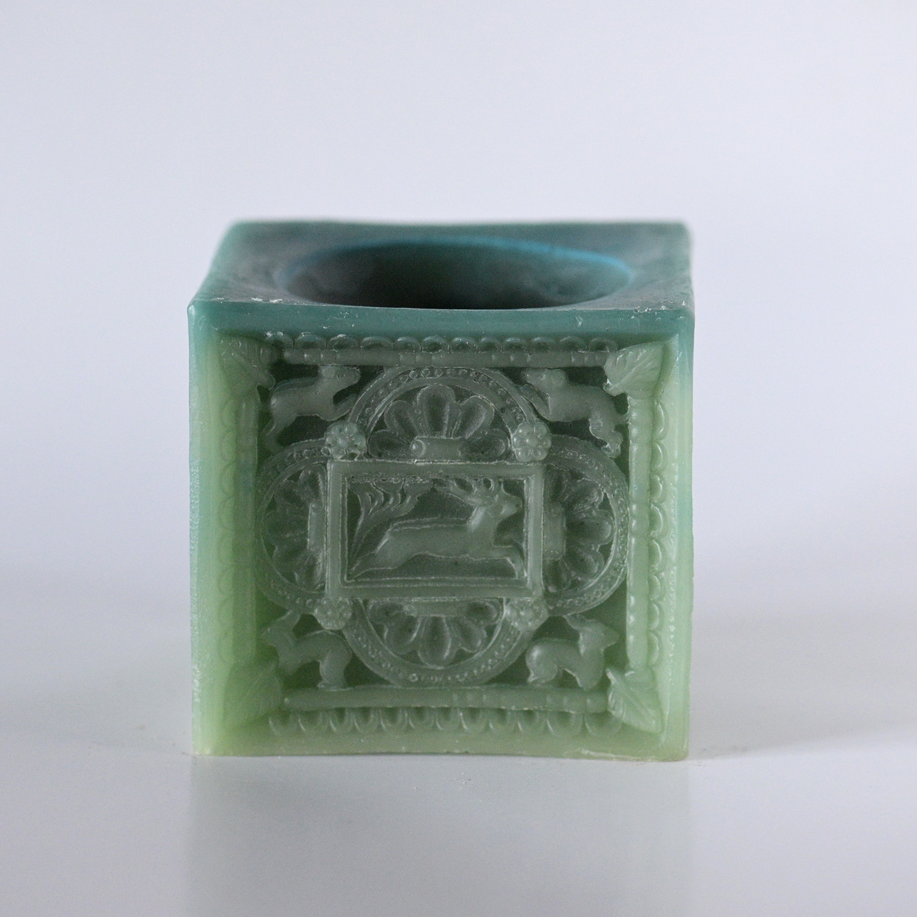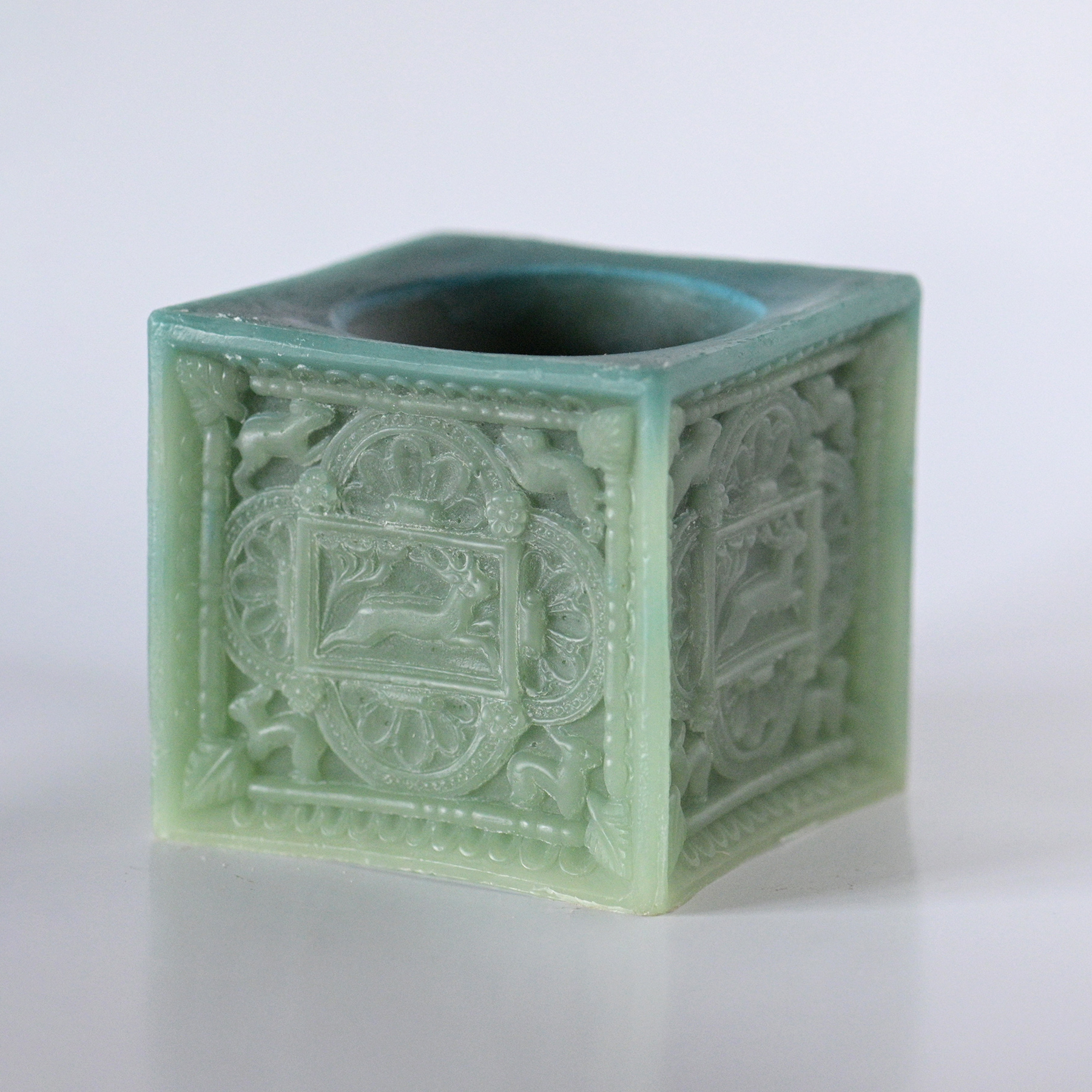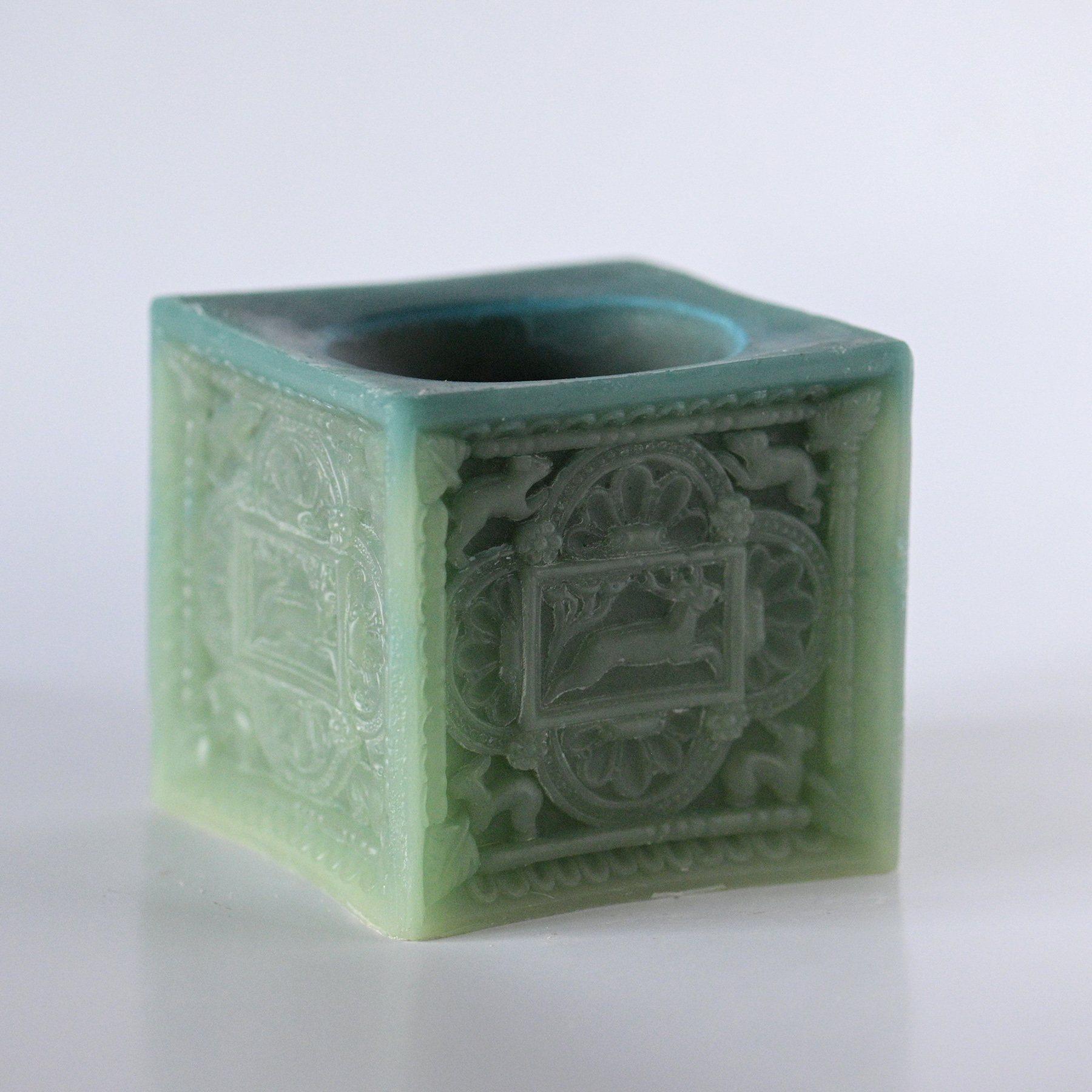 В разработке образов коллекции свечей мы использовали формы местных керамических изразцов разных эпох: готическая (1350-е), северный ренессанс и маньеризм (1580-е), барокко (1650-е) и изображения хаусмарок эпохи ардеко 1920-х годов, сохранившиеся на калининградских улицах. Свечи пастельных тонов, плюс новогодние ароматы: имбирного пряника, коричных булок, печенья, новогодней елки, пихты (и, само собой, шампанского с мандаринами)